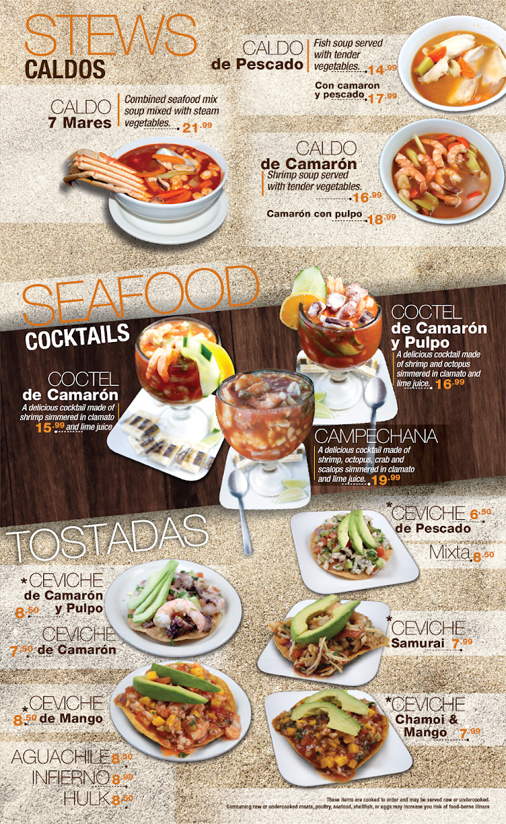 Guests often enjoy street tacos or the hearty molcajete de mariscos as part of a laid-back meal, while the all-you-can-eat taco bar makes for a fun, interactive dining experience perfect for groups or celebrations. The menu includes a range of sandwiches, like pork or steak tortas served with fries, as well as classic enchiladas and warming options such as pozole and caldo 7 mares.